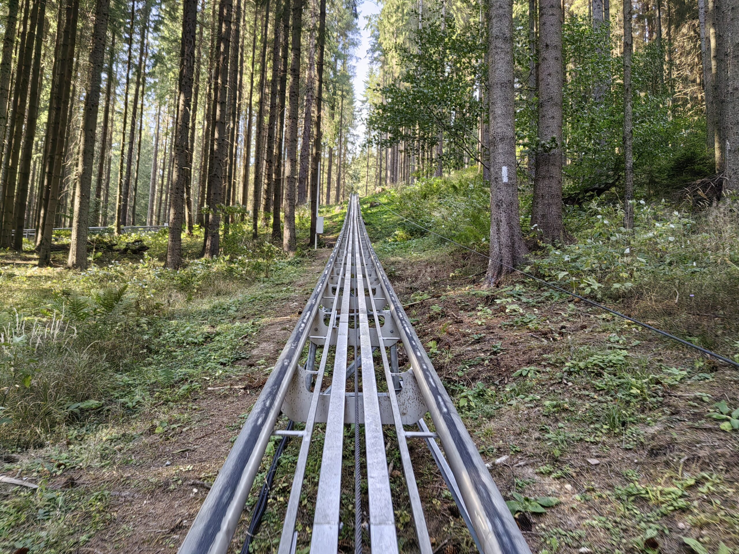 Pista de bob de la Lacul Rosu are un traseu spectaculos prin padure, un peisaj unic.