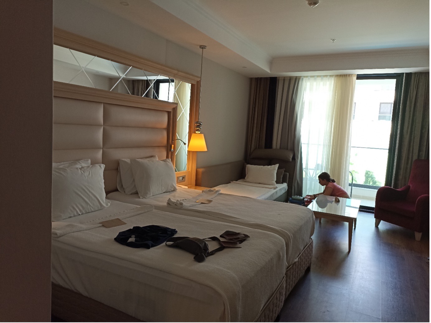 Camerele. Mari si luxoase. Se facea curatenie zilnic. Puteai sa ceri orice aveai nevoie: un prosop curat, un gel de dus,etc. Frigiderul era aprovizionat zilnic.