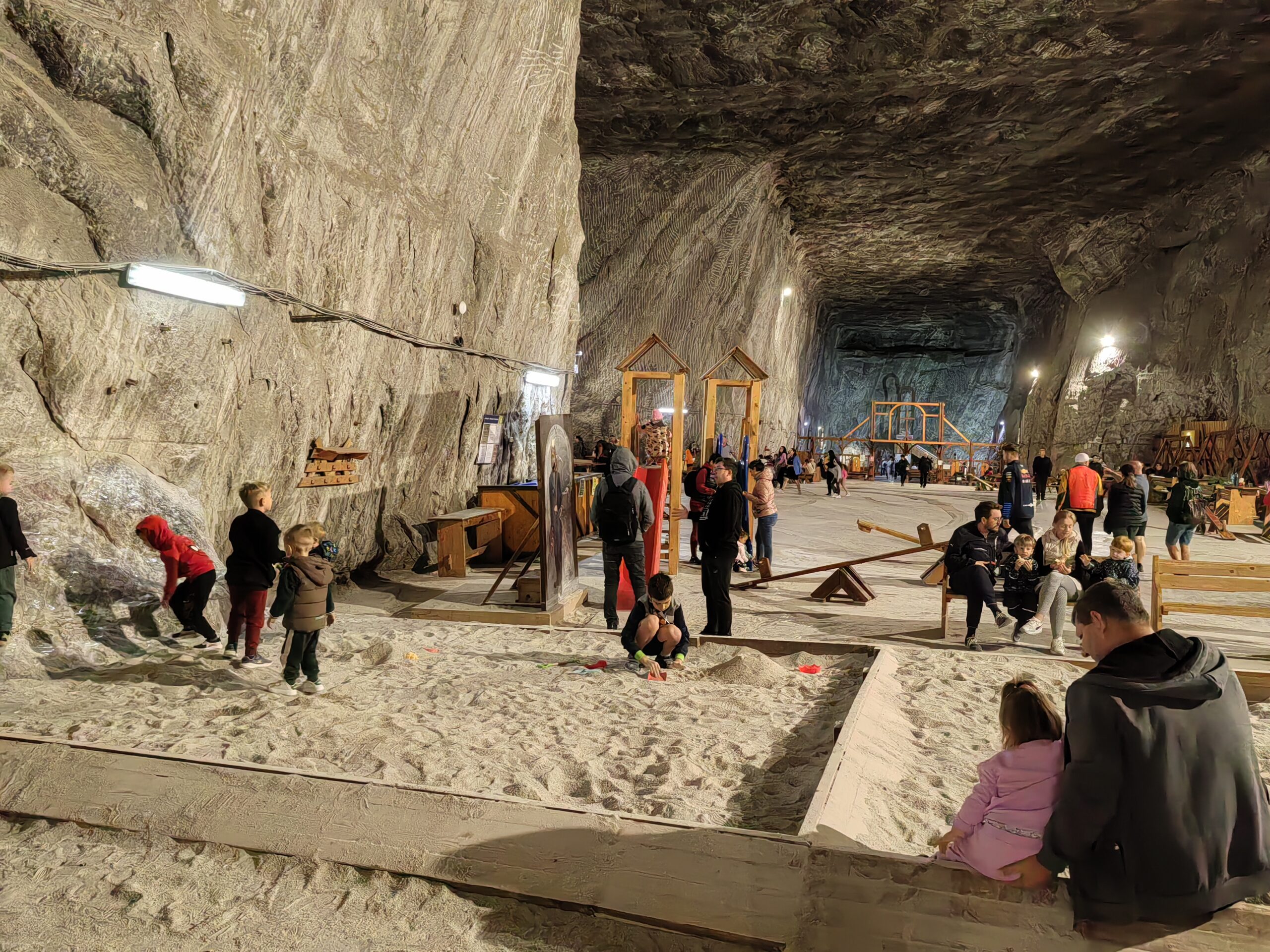 In salina Praid ai semnal la telefon si internet. Nu ai cum sa te plictisesti. Exista restaurant, cafenea si magazin de suveniruri, o mica biserica improvizata, spatii de relaxare si informatii despre istoricul salinei.