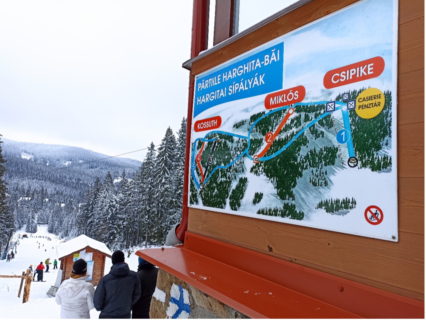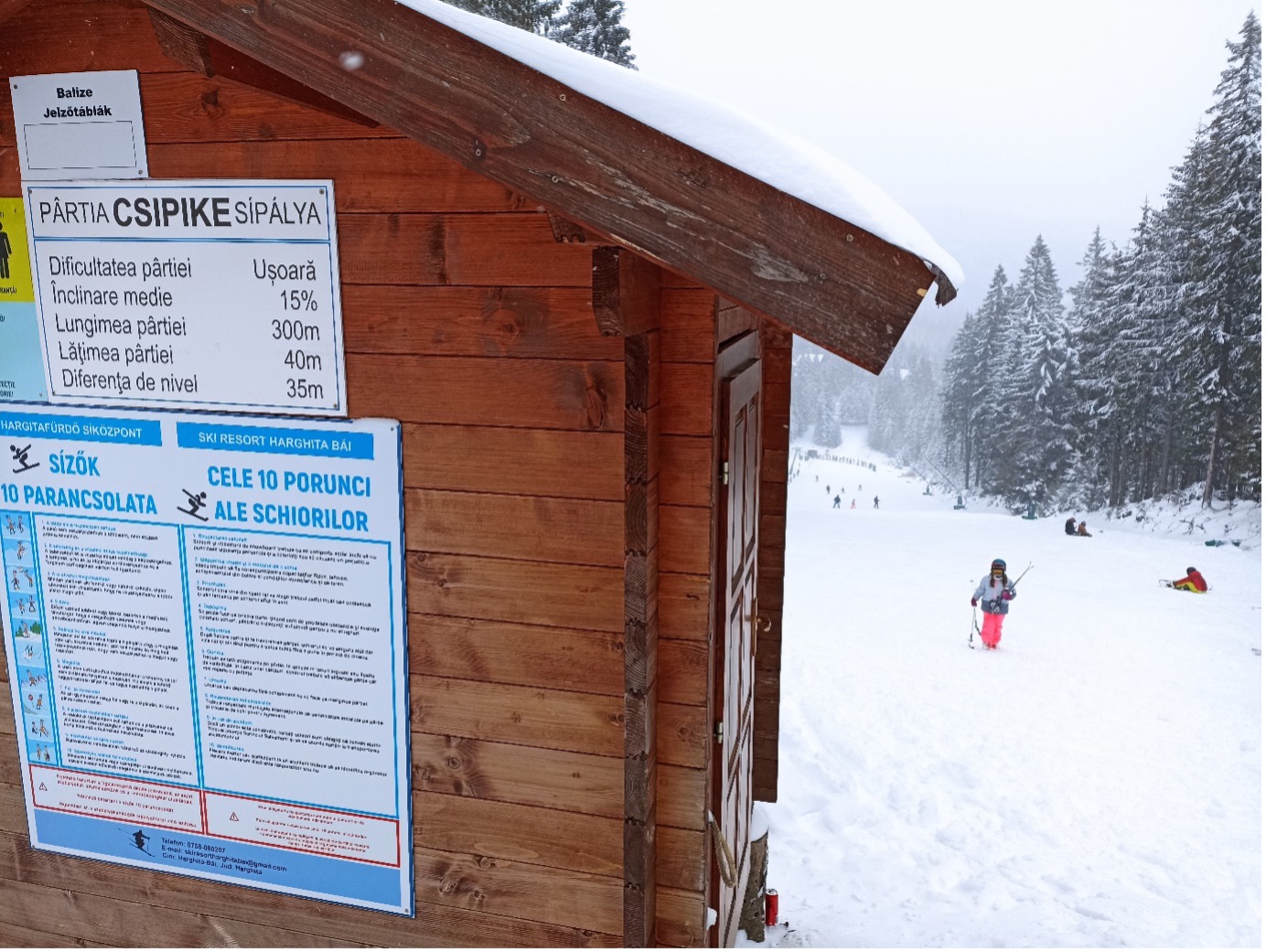 Un loc liber, linistit, curat si cu oameni respectuosi. Localnicii vorbesc in maghiara intre ei, dar turistilor romani le raspund amabil in romaneste, desigur. De cum am ajuns am ramas impresionati de cat de frumos este peisajul de iarna, totul alb si din loc in loc brazi falnici si case de la care se vedea cum iese fumul pe horn. Din pacate o zona frumoasa despre care nu auzisem si nu vazusem mai nimic, deci o zona putin promovata turistic. La intrarea in statiune, prima cladire este sediul unui club scolar de schi, semn ca in zona se practica sporturile de iarna cu simt de raspundere. Drumul principal continua si dupa aproape 1 km se ajunge la baza partiei Csipike, langa resortul Balu, unde se afla centrele de inchirieri echipamente de schi si casieria de unde poti cumpara ski-pass. Tot aici se afla si diverse buticuri cu alimente si bauturi.