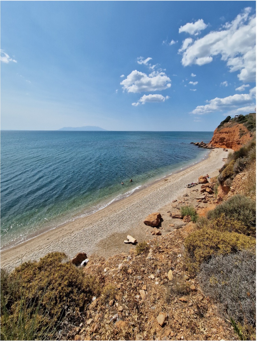 - Plaja publica la care se ajunge in 3 minute de la hotel. Este o fasie de plaja lunga de la Nea Chili pana spre EOT Beach. Din loc in loc sunt tersase. Noi ne-am oprit in fiecare zi la primele sezlonguri, plaja privata din fata hotelului Aphroditi Island Park, unde primesti un sezlong gratuit daca iti cumperi de la Island Beach Bar de exemplu o cafea sau un suc.